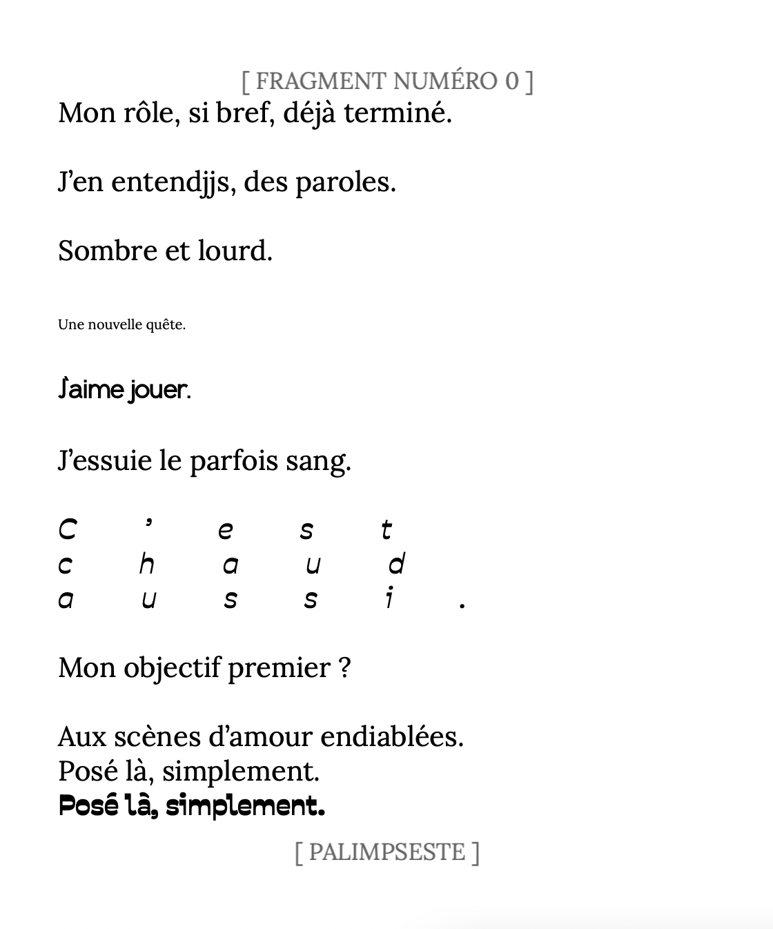 Ce n’est pas un jeu d’écriture. C’est un outil. C’est une invitation à habiter le texte autrement, à en faire l’expérience, à le manipuler et le réinventer. Chaque expérience est une nouvelle exploration, un récit toujours en mutation.